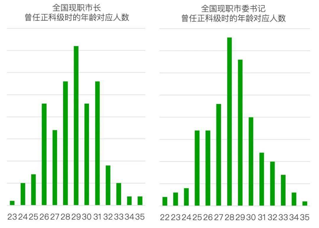 有研究收集了全国市委书记和市长初任正科级时的年龄,分析结果发现他们任正科级时年龄范围趋向一致,集中在28岁上下,且最大也不超过35岁。地级市在中国行政体系中是非常重要的一个关键环节,在省和县之间发挥着至关重要的纽带作用。国家对地市级干部的培养和选拔从他们正科级时就已经开始了。如果想在体制内得到更大的升迁机会,任正科级时年龄的隐形天花板就是35岁。晋升为正科级干部的占比并不在少数,但晋升年龄却决定了发展高度。