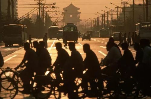 这一年,北京街头的人们还穿着蓝色和深绿色的衣服,自行车是城市出行的主要交通工具,街道上偶尔还有马车驶过,马路上留下一滩动物粪便。