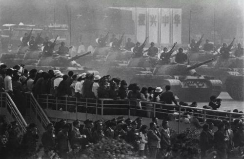 贺延光当时很年轻,本来没有机会拍摄阅兵式。但由于他是随团采访日本青年访华团的记者,才有机会站到了劳动人民文化宫正门南侧的观礼台上,拍下了那张将来享誉世界的照片。